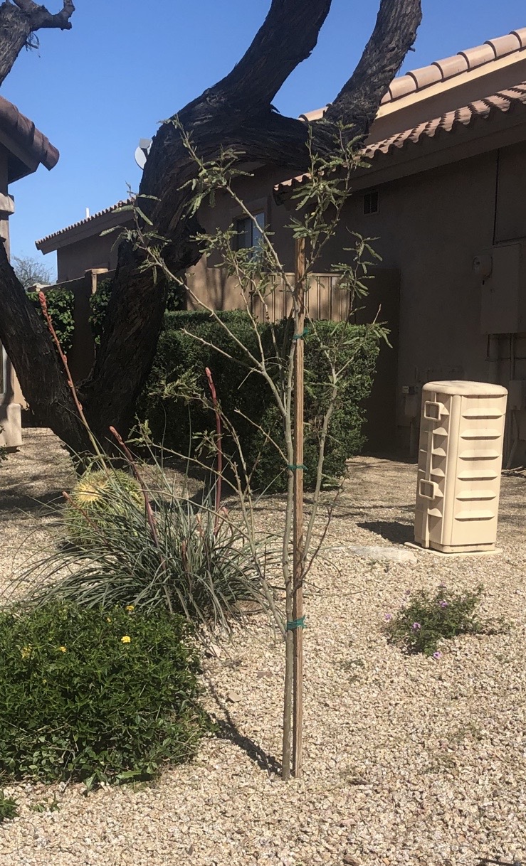 The first tree is courtesy of Dr. Ayesha Najib. She planted a beautiful Mesquite tree in Scottsdale, Arizona. These trees produce beans and blooms that attract wildlife and they also provide perches and nesting sites for birds!